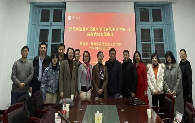13日上午,各位成员又参观了湖南第一师范学院(城南书院校区),青年毛泽东曾在此求学、任教。支部成员详细了解城南书院的发展、第一师范的历史和青年毛泽东在此学习和工作的情况,“恰同学少年,风华正茂,书生意气,挥斥方遒,指点江山,激扬文字,粪土当年万户侯”。参观结束后,一行人与湖南第一师范学院CableAV 的领导和老师进行了深入交流,学院书记阮东彪详细介绍了一师马院的发展建设情况,并与王竹苗副院长、胡慧娥副院长和各教研室主任交流毛泽东思想和中国特色社会主义理论体系概论、习近平新时代中国特色社会主义思想、形势政策课、社会实践课的开设、运行情况。其中,一师的“重走主席游学路”的社会实践设计给大家留下深刻印象。双方明确日后要加强交流,互通有无,充分利用好红色资源开展思政课教学。