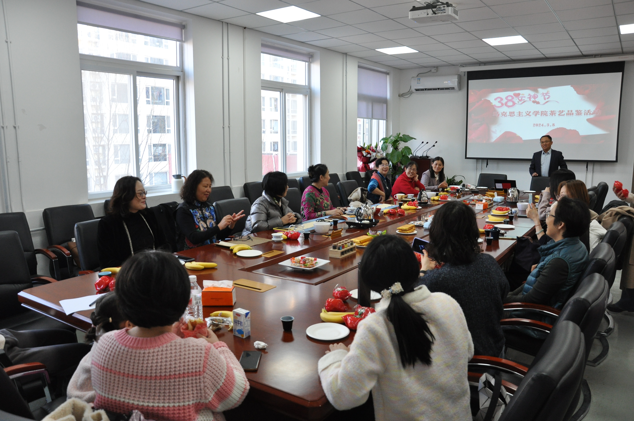 活动的最后,学院工会主席郑士鹏为张宏老师和学院女职工赠送鲜花,向大家表达了节日的祝福。