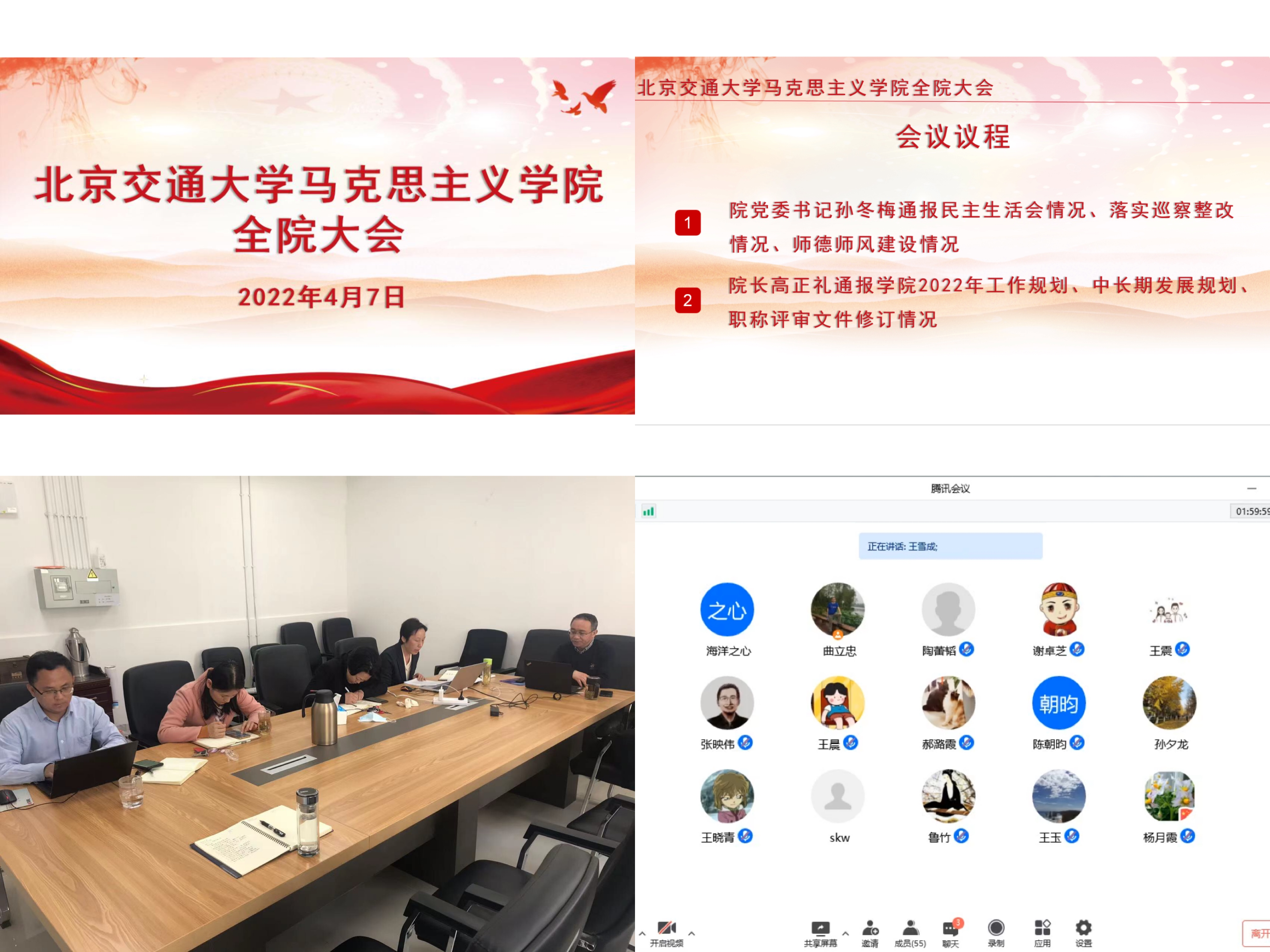 2022年4月7日下午,我院2022年度第一次教职工大会顺利召开,根据学校疫情防控要求,此次会议采取线上线下相结合的方式。院领导班子全体成员及全院教职工参加会议。学院党委副书记、副院长田永静主持会议。