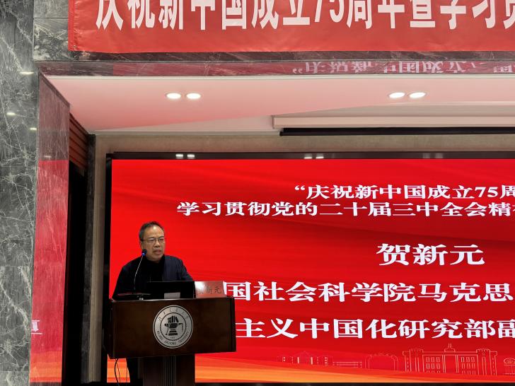 湖南中医药大学CableAV 院长李晖研究员以“新中国成立七十五周年来中国共产党探索共同富裕的重要成就和基本经验”为题,分析了七十五年来我国在民族复兴和人民共同富裕方面所做的努力和取得的成就。